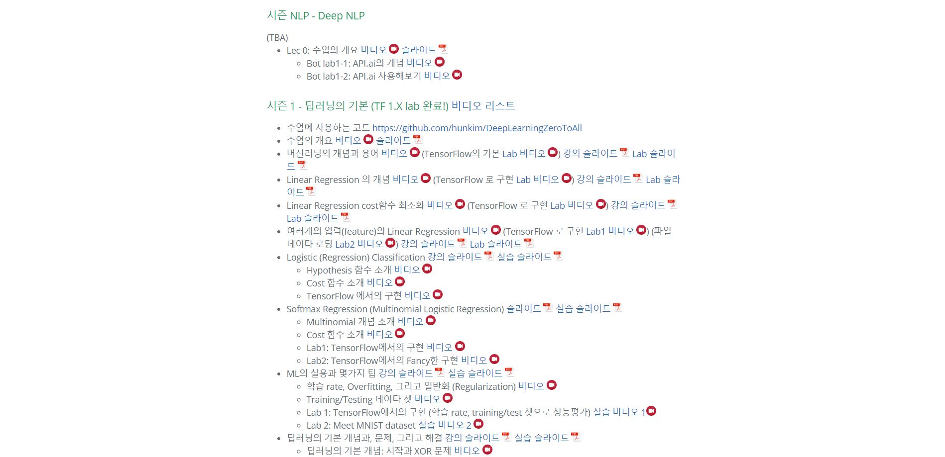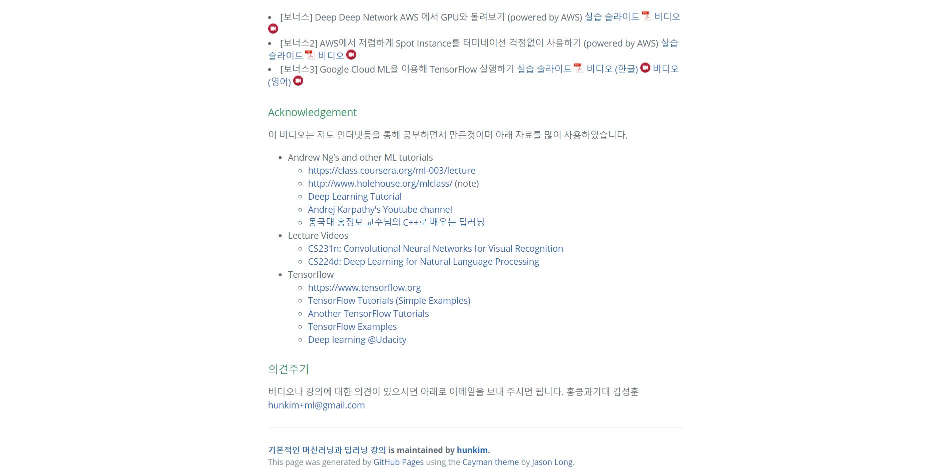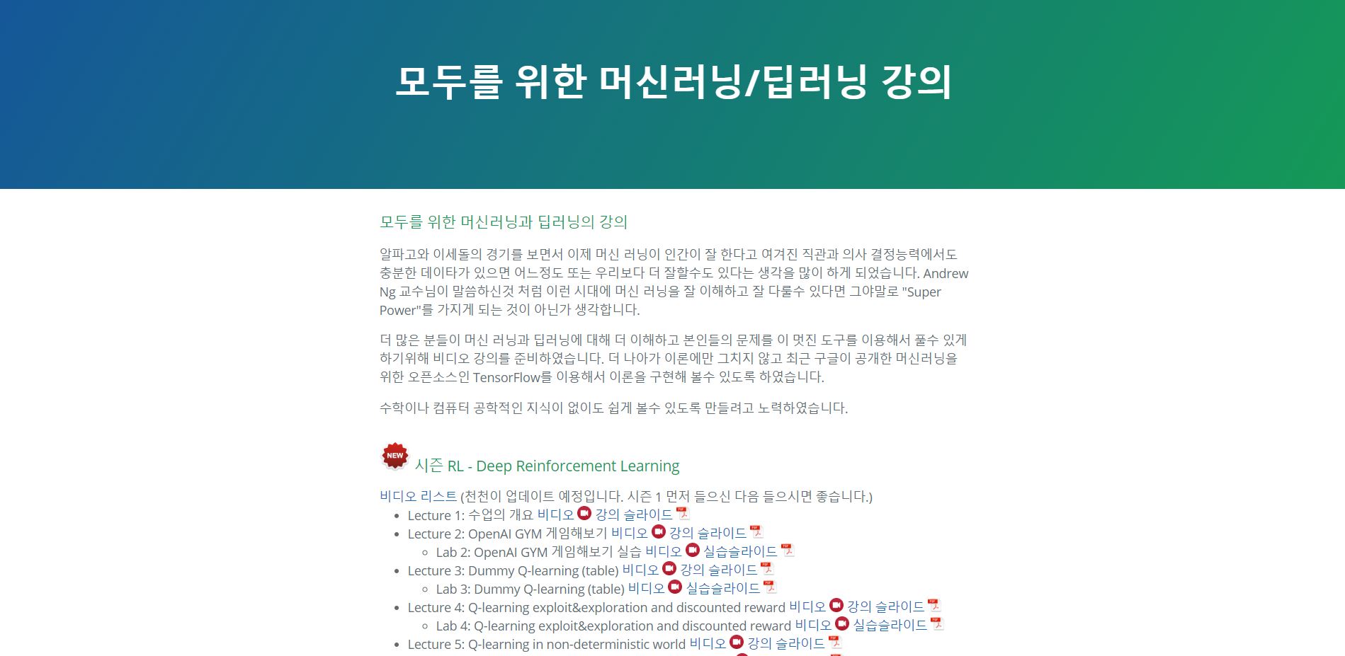딥러닝 & 머신러닝 교육 사이트 : http://hunkim.github.io/ml/